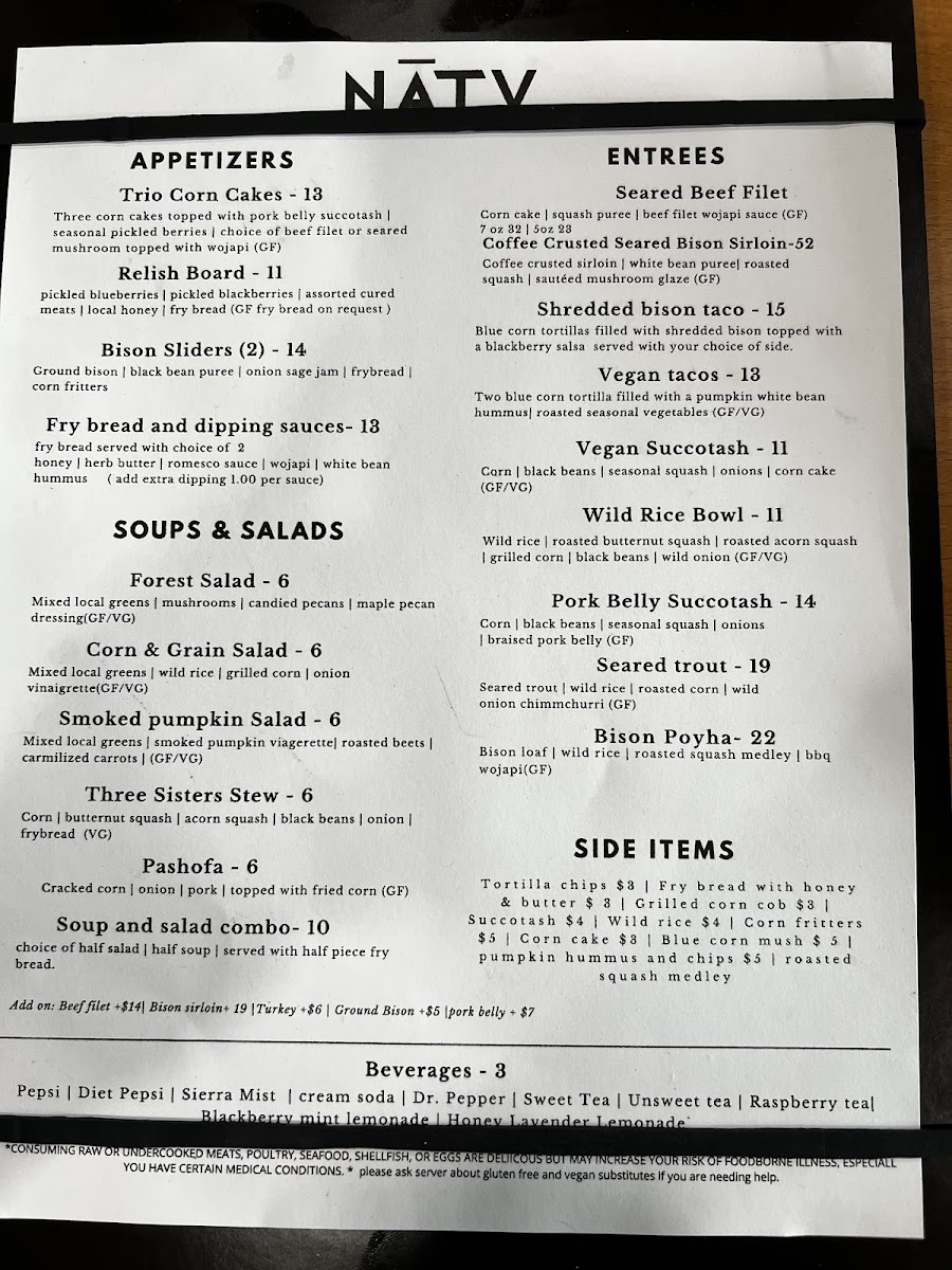 Introducing the menu at Nātv - Broken Arrow, a hidden gem located at 1611 S Main St, Broken Arrow, OK. This fine dining establishment redefines culinary experiences with its unique fusion of flavors, particularly highlighted by their exquisite bison dishes. Diners rave about the Three Sisters soup and the incredible Bison Poyha and Bison 7oz Filet, both praised for their depth and creativity.